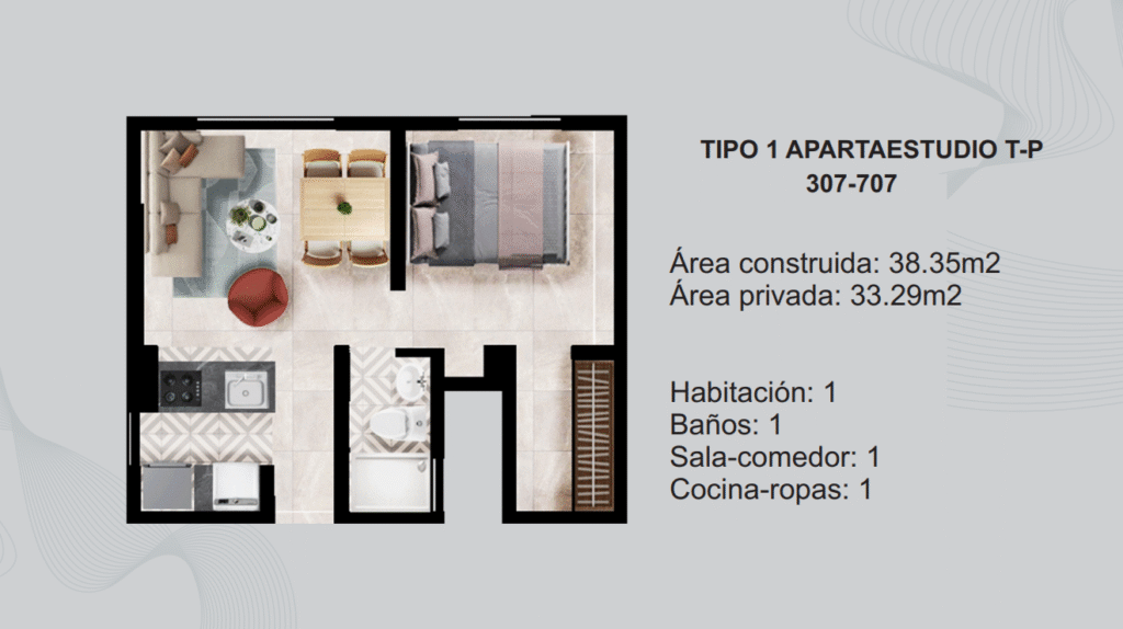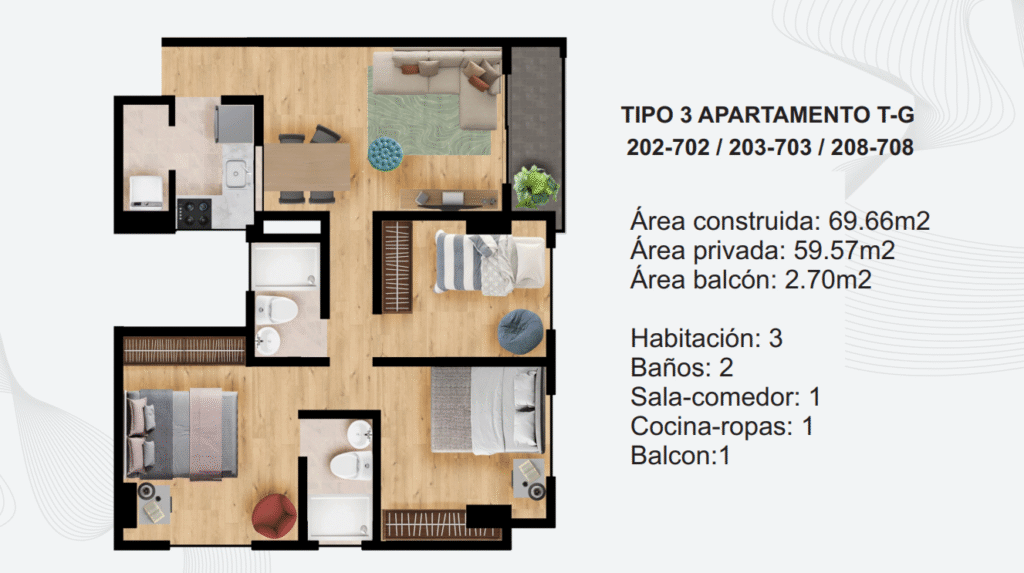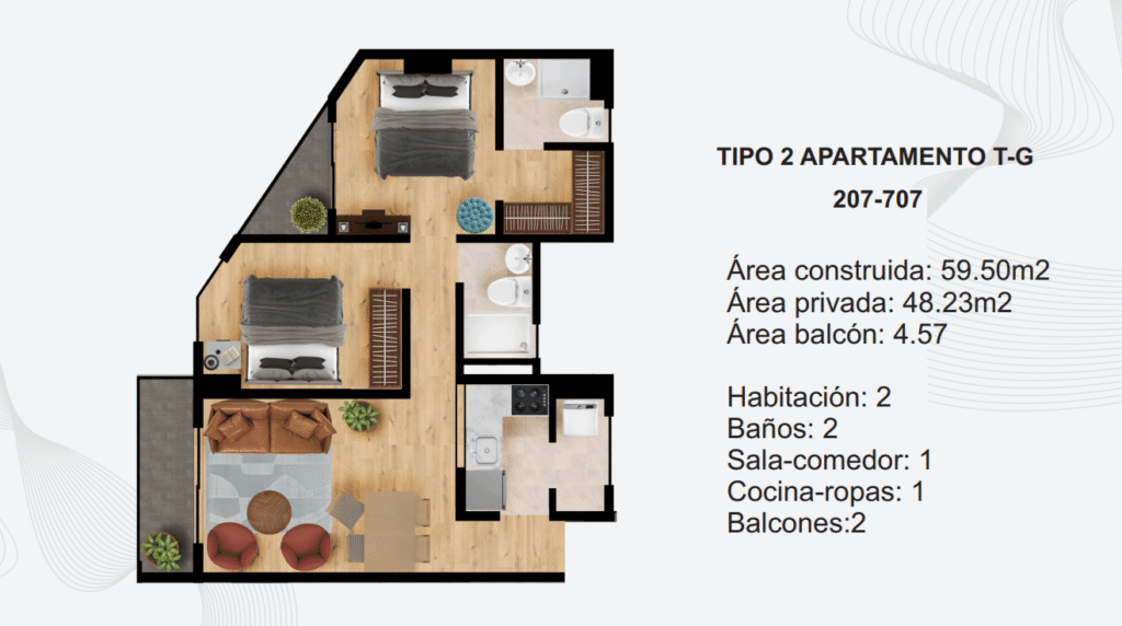 Cuenta con 7 niveles y ofrece una excelente distribución de espacios y zonas comunes. Está conformada por: • 60 apartamentos